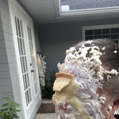 Bradley k was surprised by MessyGirlPeyton with a big sloppy cream pie to the face